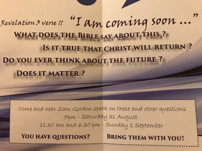 Details of some question and answer sessions around the topic “I am coming soon” … details below. All welcome!