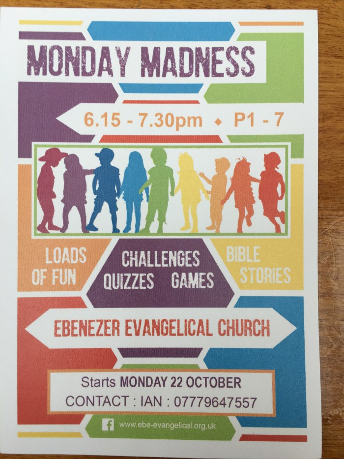 Monday madness starts again tomorrow night. If you are in P1 – P7 we would love to see you!
